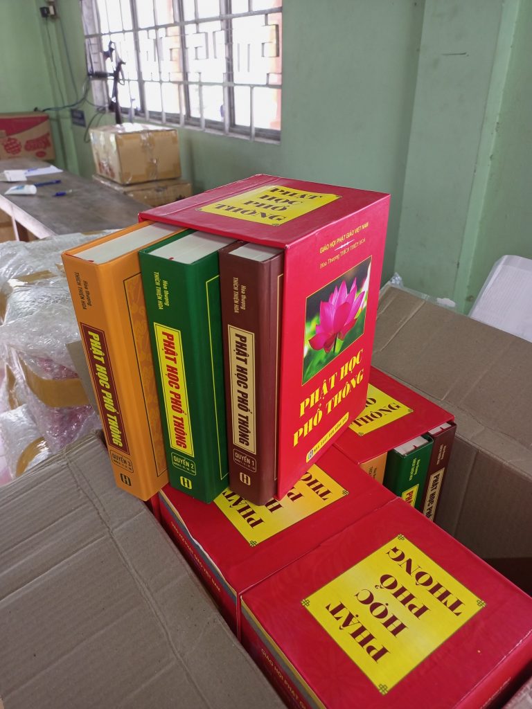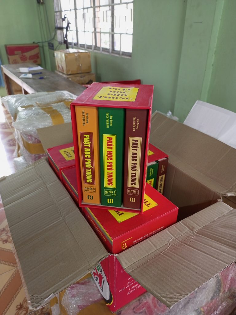 HÌNH ẢNH KINH SÁCH ĐÃ CHUYỂN VỀ CÚNG DƯỜNG CHO CHƯ TĂNG NI TU HỌC TẠI TRƯỜNG TRUNG CẤP PHẬT HỌC TỈNH VĨNH LONG