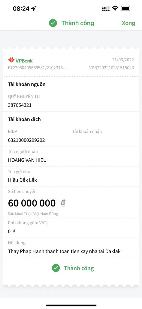 – Khi chuyển khoản, Phật tử vui lòng ghi trong ghi chú giao dịch tên mình để việc theo dõi cập nhật danh sách dễ dàng hơn.
